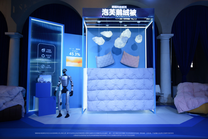 水星展示的泡芙鹅绒被,采用黑科技加持,配合专业的人体工学分区充绒,升温快45.3%,避免传统鹅绒被“跑绒”问题。盖在身上轻盈无压迫感,却能牢牢锁住温度,即使在寒冬也能保持被窝温暖均匀,让消费者享受“轻盈裹暖”的睡眠体验。